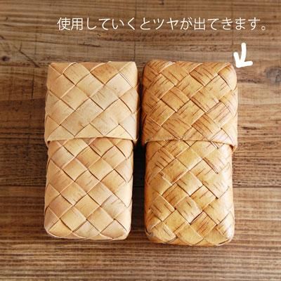 最初はマットな白樺皮も、バッグに入れて持ち運んだり、ふたを開け閉めする事で少しずつツヤが出て手触りもなめらかになっていきます。